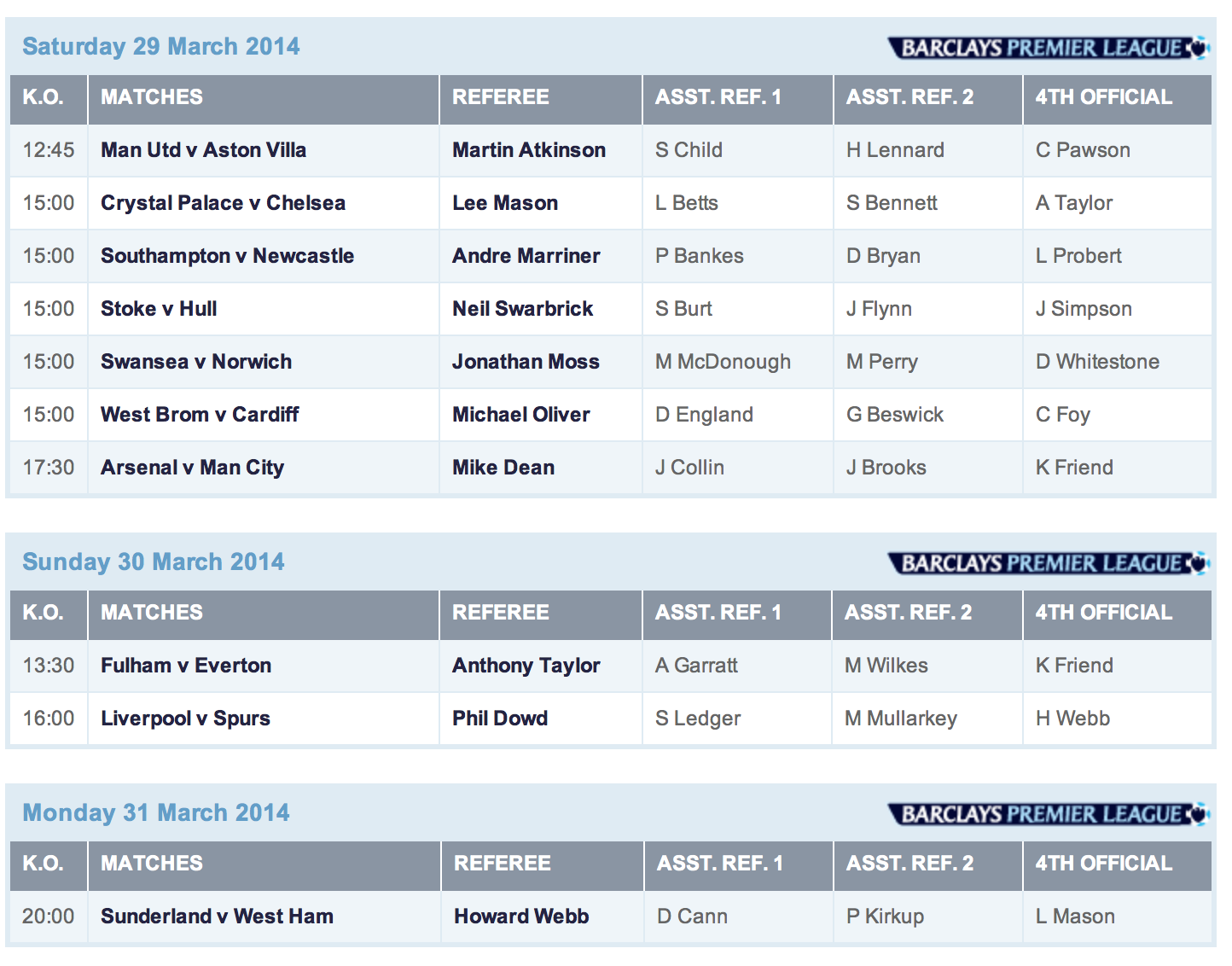 Mark Clattenburg is missing, however; he might be up for Europa League this coming week, or might just be taking a much needed break. Even Superman has to rest sometime…