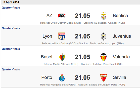 These appointments are about what you’d expect for Europa League matches: solid referees who aren’t quite at the Champions League/World Cup level.