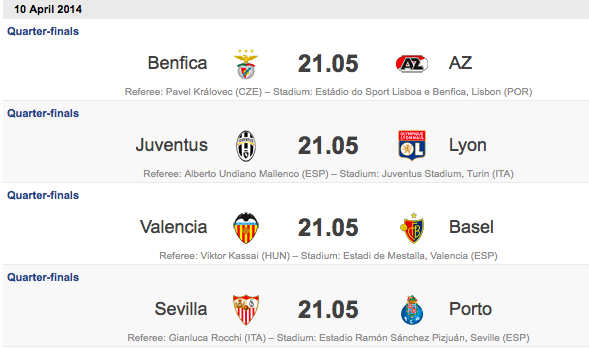 Here are the referees for the Europa League Quarterfinals, to be played April 10
