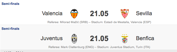 He will take Juventus v. Benfica, while World Cup-bound Serbian referee Milorad Mazic takes Valencia v. Sevilla.