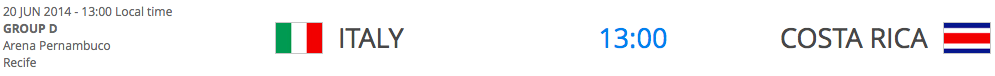 The Chileans, who performed admirably their first time out, take Italy v. Costa Rica (which looks to be a better game than it seems on paper.)