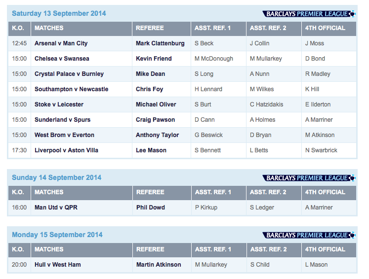 English Premier League Referees: Matchweek 4